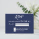 Cartões RSVP de casamento azuis e brancos Elegantes com fundo azul marinho e texto branco e gráficos decorativos brancos que podem mudar
