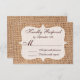 Este é um cartão de resposta RSVP de casamento do país rústico com um fundo de burlap impresso. A pá é apenas uma design impressa, NÃO é um pano real da pá. Convites de casamento de burlap iguais vendidos aqui:
