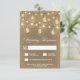 Country Burlap Mason Jar Wedding RSVP Cards - apresenta um fundo rústico ou country burlap com luzes de cordas e frascos-mason acesos.