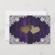Estes cartões RSVP roxos e girassóis apresentam flores de girassol em um fundo de madeira adornado com rendas florais brancas e luzes de cordas. Design de cartão perfeito para seu casamento rústico roxo inspirado pelas flores de girassol. Itens correspondentes disponíveis.