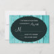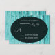 Este convite de casamento rústico é perfeito para qualquer casamento. Apresenta uma madeira de celeiro rústica em ambos os lados do convite em tons de cor azul-aqua lacrimogêneo. A inscrição em cima de um oval aqua escuro que tem bordas torcidas. Perfeito para um casamento no campo ou no celeiro. Basta adicionar sua data de RSVP ao cartão. Se você precisar alterar o tamanho ou a fonte do texto, poderá usar o botão "Personalizar" para mover as coisas, redimensionar o texto e personalizá-lo completamente. Caso contrário, se você gosta do layout e da fonte como ele é, então apenas insira seus detalhes de casamento nos pontos de modelo. Este Cartão RSVP Corresponde aos convites de casamento:
