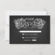 cartões RSVP de casamento de quadro negro e cinza com lindas flores pintadas com design.