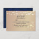 Elegante e rústico, este cartão RSVP de casamento apresenta luzes de cordas brilhantes sobre um fundo bege macio com delicados sotaques florais de ouro. Coordenando-se com a suíte de noites de marinhos e lanternas, inclui preferências de refeições e um esquema de resposta clássico para respostas fáceis de hóspedes. Um toque encantador para casamentos no inverno, comemorações de celeiros ou recepções noturnas.