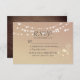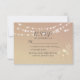 Cartão RSVP rústico elegante para um casamento de outono ou celeiro, com luzes de cordas falsas, local floral de ouro suave e roteiro de caligrafia de tendências. Um design quente e romântico perfeito para as recepções de outono ou à noite. Personalize com as opções de refeições de hóspedes e o prazo de resposta. Combina com a Rustic Wood String Lights Wedding Invitation Suite.