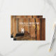 Um cartão de resposta de convite de casamento do país rústico, com um antigo celeiro no canto e um fundo de pranchas de madeira escura e afligida. Completamente personalizável com seus próprios detalhes. A parte de trás do convite tem "RSVP" no script. Aqui está o conjunto de convites de casamento personalizados correspondente: