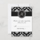 Design de Monograma Elegante e Negrito com Cartões RSVP de Cor damasco Preta e Branca. Cartões RSVP de Convite de Casamento Inicial para Damasco Preto para Convite de Tamanho Quadrado. Personalize com seus detalhes de rsvp de casamento e informações pessoais. Elke Clarke ©