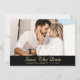 Cartões salve a data elegantes de casamento preto e dourado com fotos de noivado e um roteiro dourado em fundo preto. Casamento personalizado de preto e ouro salve os cartões de data. Casamento personalizável em preto e ouro salve os cartões de data. Casamento de script salve os cartões de data. Preto e ouro salvam a data.