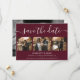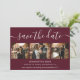 Elegante cartões salve a data de casamento burgundy com caligrafia moderna. Personalize facilmente este cartão com suas imagens e detalhes de casamento, incluindo um site de casamento, se aplicável.