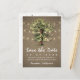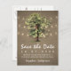 Cartões salve a data Vintage Oak Tree Rustic Lights - apresenta um fundo de burlap vintage impresso com carvalho vintage e luzes de cordas. Consulte a coleção correspondente nesta página.