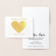 Esta opção salva o cartão de data é elegante com uma impressão em folha de alumínio. Escolha entre um acabamento de folha de ouro ou prata na frente do cartão que apresente um grande coração, os nomes da noiva e do noivo e a data do casamento. Todos os detalhes na dentro da placa podem ser personalizados.