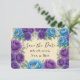 Uma design de convite de casamento incrível mostrando uma elegante aquarela Lyon Blue peonies, aliada a ricos rosas de Fig Purple e verde macio. A paleta de cores ousada, mas romântica, torna esse design ideal para casais que buscam um tema floral único e eterno. Perfeito para casamentos.
