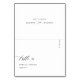 Direcione seus hóspedes para seus assentos com nossos Cartões Simples de Casamento com a Escolha das Refeições. Estes cartões de visita meticulosamente projetados contêm modernos cartões de visita dobrados, incorporando caligrafia clássica em preto e branco, que complementa qualquer tema de casamento desde o romântico ao outono minimalista. Cada cartão exibe não apenas o nome do convidado e o número da tabela, mas também a refeição escolhida, garantindo uma experiência perfeita de jantar. Ideal para quaisquer casamentos, esses cartões de lugar também são perfeitos para jantas de ensaios de escala superior e chás de panela elegantes. O seu design simples, mas luxuoso, adiciona um toque refinado às suas definições de mesa, casando a funcionalidade com um toque de estilo e fazer que cada convidado sente-se apreciado.