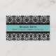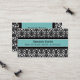 Cartões telefónicos das mamães na cor damasco floral clássica do chique e do vintage no azul de turquesa moderno do aqua, preto e branco. Customizável com seus detalhes do contato, na moda e contemporâneo, a maneira perfeita de setup datas do jogo ou de manter o contato com mães do playgroup. Contacte-nos para uma cor feita sob encomenda.