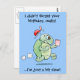 Uma tartaruga de estilo cartoon atrasada com cartões de aniversários, dizendo "Eu não esqueci seu aniversário, sério! ...Sou um pouco lento!" (o texto pode ser modificado).