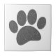 Uma pinta de pata de cachorro fofa. Papel antigo, efeito de vintage aplicado à imagem. Versão das cinzas. Azulejos de cerâmica personalizados. Ideia de presente para amantes de cães.