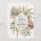 Celebre o seu pequeno com esse convite revelador de grama boho pampas! A erva Pampas e uma delicada estrutura de ouro, combinada com o eucalipto verde e flores secas, ajudam a criar um olhar rústico e sofisticado que é perfeito para a sua revelação de gênero. O esquema neutro de cor do bege, ouro, branco e ferrugem ajuda a fazer disso um convite ideal para partidos neutros em termos de gênero e revelações. A combinação de texto cursivo e tradicional junta o olhar para um sentimento único e vintage!