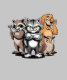 A bold cartoon-style illustration featuring a united team of anthropomorphic animals including a fierce raccoon with a hammer, a tough gray cat with crossed arms, a cheerful golden dog, and a wise owl. With clean white background, strong outlines, and expressive personalities, this playful design captures friendship, teamwork, and character-driven charm. Perfect for fans of cute yet powerful animal art and animated-style illustrations.