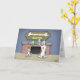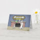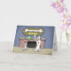Um Cartoon de aniversário de um cão Pai e seu filho admirando um troféu de osso. O dentro do cartão diz: "Cada cão tem o seu dia... Espero que este seja o seu Feliz Aniversário!"