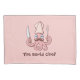 Cartoon de chef rosa com bigode segurando faca e garfo de cozinhar. Cor de fundo personalizada. Custom Text. Um padrão perfeito no lado de trás.