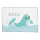 Adicione um toque de árctico ao decor do quarto do seu filho! A frente desta design mágica apresenta um feliz nado azul entrelaçado e saltando na água. A baleia tem uma bolota amarela e pestanas bonito. Você pode personalizá-lo com sua escolha de nome. A parte de trás desta design tem um padrão de narvais.