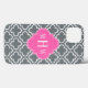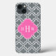 Cinzas de carvão e quatrefoil marroquino branco Trellis Padrão #6, rosa quente nº 2 Fita 3 Monograma inicial Personalize isso com seu 3 monograma, nome ou outro texto inicial. Você também pode alterar a fonte, ajustar o tamanho e a cor da fonte, mover o texto para ajustar o espaçamento da letra do monograma, etc. Observe que este é um design gráfico digitalmente criado que é transferido para o produto subjacente. O design não contém fita, etiquetas, metais, gravuras, etc. Precisa deste padrão em outras cores ou designs? Basta soltar um e-mail e nos avisar!