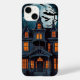 Casa assombrada com morcegos circulando por cima, design de Halloween perfeito para camisas e adesivos.