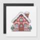 Uma encantadora casa de biscoito de gengibre rosa com decorações de coração, telhado nevado e uma chaminé.