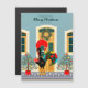 Esta ilustração festiva e elegante de Natal mostra uma fachada amarela de uma antiga casa tradicional portuguesa adornada com portas e janelas de madeira e balcões de ferro moldados. A calçada é agarrada por Portugal, enquanto duas árvores de Natal enfeitadas com bolas coloridas de Natal ficam ao lado da entrada. Uma coroa de Natal agita a porta. A cena captura a essência do Natal português nas ruas — uma mistura harmoniosa de arquitetura tradicional e espírito de feriado alegre. O Galo Português fica em frente à casa segurando um presente de Natal cuidadosamente escolhido que ele está prestes a entregar. O ato captura a essência da estação, a alegria de dar. Esta ilustração peculiar abarca o verdadeiro espírito da época em Portugal. Esse produto é ideal para oferecer a um amigo português, a um parente, a alguém de ascendência portuguesa ou a alguém que aprecie tradições portuguesas. Remova ou altere as palavras e sua fonte com a Ferramenta Design do Zazzle.