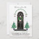 Uma varanda da frente clássica decorou para as férias, com árvores de Natal com estrelas flanqueando a elegante porta preta, uma coroa de pinho com arco de gingham rosa, e lanternas cortadas com rosas e sagradas. No estilo da Magnolia| Rendimentos agrícolas| elegante clássico. 3 CORES DE XADREZ PARA A PARTE TRASEIRA ESTÃO NA DESIGN (verde como mostrado, preto ou rosa - basta editar e ocultar as que você não quer).