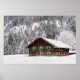 Poster impressão de uma tradicional casa de madeira com persianas verdes numa floresta no inverno, na Baviera, na fronteira entre a Alemanha e a Áustria.