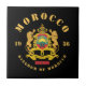 A casaco nacional de armas de Marrocos está centrada em duas partes do texto. A parte superior é o nome do país, conhecido como o mundo todo, e a outra parte do texto é o nome oficial do país. O ano da independência aparece no meio da design, e embaixo do emblema, está uma pequena bandeira nacional.