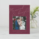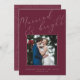 Cartões com fotos elegantes para recém-casados apresentam uma foto favorita de casamento quadrado em um rico fundo de burgundy, com "casado e brilhante" em roteiro de caligrafia tonal. Personalize com seus nomes ou saudação personalizada abaixo. Perfeito por compartilhar uma foto de casamento para seu primeiro Natal casado.