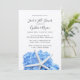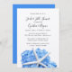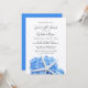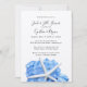 Chá de panela de hydrangea azul com tema de praia. Bonito pétalas azuis-claras possuem uma estrela branca do mar e constituem o fundo para o texto personalizado. Inclua facilmente informações de registro de armazenamento, se necessário. Perfeito para um chá temático da praia para a noiva ou casal. Escolha um documento especial para melhorar ainda mais o convite.