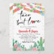 Tema mexicano colorido Fiesta Casal Chá Convite design com flores brilhantes e cacto.