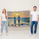 Este é um original da Habatour Creations lança cobertor, decorado com um autêntico design de ilustração artística, com um pôr do sol na praia, com duas pessoas de mãos dadas Direitos autorais de @Habatour Creations Copy ou use sem permissão é ilegal