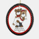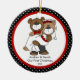 Nossos primeiros enfeites de natal caracterizam um grupo bonito da noiva & do noivo do urso preta & vermelha fundo pontilhado em uma polca! Personalize com sua informação e data e você são todos ajustam-se para ir! Presente datado maravilhoso da lembrança para seu primeiro Natal e uma grande adição a você coleção dos enfeites de natal.