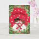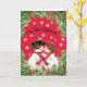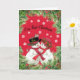 Este adorável Casal da Neve está em frente a um fundo vermelho com flocos de neve. Eles estão cercados por uma grinalda de sempre-verdes. O texto na frente e dentro pode ser personalizado.