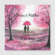 Carteira magnética de trabalho de arte de árvore do amor de casamento russo. Aniversário de casamento. Casal romântico, noiva e noivo, primeiro encontro, primeiro amor. A cereja rosa floresce a árvore das flores. Decoração de casa. Decoração chic.