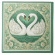 Casal de Cisnes Verde Art Nouveau com Motivos Flor