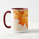 A design desta caneca combo é baseada numa pintura de duas folhas de Maple no outono, por mim. Eles exibem uma mistura de muitas cores quentes junto com a complexidade das veias em marrom. As cores de queda acabaram rapidamente, mas com este design neste produto você pode aproveitá-las o ano inteiro!