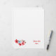 Casal bonito de pássaros vermelho flores vermelhas, timbrado personalizado, com duas aves bonitinhas rosa e azul em um galho com flores vermelhas.