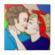 Casal vermelho colorido, azul, verde limão, estilo pop-art, estilo beijando azulejo.