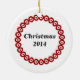 Uma figura casal expectante, dois gatos e um cão da vara na frente da árvore decorada do feriado com uma área que nos leia "está esperando!" no rosa. O ornamento para trás tem um anel vermelho do coração com texto que você pode personalizar com o Natal do ano em curso!