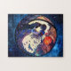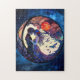 Um quebra-cabeça de serra com design de vidro manchado de casal e lua.