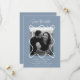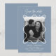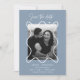 Salve Nossa Data. Este cartão de Salva a Data com foto de Casal Feliz em tema azul poeirado moderno e caprichoso, é perfeito para o anúncio de celebração de casamento do seu dia especial. Este convite de salva a data apresenta uma foto, e você pode facilmente alterar os detalhes do anúncio de salva a data do casamento. Este cartão também está disponível em versão digital para download.