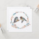 A obra de arte original deste impressão é uma pintura a lápis aquarela e colorida de um adorável casal de pássaros azuis orientais cercado por uma coroa floral. Trabalho de arte da artista de Michigan Jennifer Steffen.