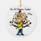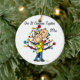 Um ornamento cerâmico redondo bonito da lembrança caracteriza uma figura casal da vara no amor que tem seu primeiro Natal junto! Adicione facilmente sua escolha do texto e da data ao ano em curso nesta figura bonito casal da vara com o ornamento do design da árvore de Natal. Faz uma grande ideia do presente!