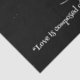 Papel de tecido dotado com silhueta de um casal apaixonado por uma citação de Aristóteles contra um fundo preto.