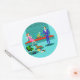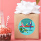 Este Casal Retro com Dog Stickers parece uma cena de uma comédia romântica. O estilo da década de 1960, design de arte minimalista apresenta um casal atraente desfrutando de uma noite romântica em casa. A sala sofisticada apresenta de forma destacada um aqua e uma lareira de tijolos com uma borda vermelha brilhante. Uma linda mulher ruiva vestindo um vestido rosa brilhante está empolgada na borda. Ela está desfrutando de um martini com uma azeitona flutuante, um fogo rugido, boa música, e a empresa um homem alto, escuro e bonito. O homem está vestindo um terno azul e gravata vermelha. Seu copo de martini é criado para brindar seu charmoso companheiro. Por outro lado, ele está segurando um álbum de vinil. Aos seus pés, vemos um dachshund adorável vestindo um colar vermelho. O cão brincalhão está caminhando na direção de um toca-discos verde com pernas de eixo laranja. No chão, há um grupo colorido de registros divertidos, ecléticos, vinílicos. Saúde! Aqui está a noite perfeita em casa.