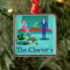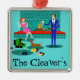 Este Casal com Enfeites de natal de Cão parece uma cena de uma comédia romântica. O estilo da década de 1960, design de arte minimalista, apresenta um casal atraente aproveitando uma noite romântica em casa. A sala sofisticada apresenta de forma destacada uma lareira de tijolos aquosos e lacrimogêneos com uma borda vermelha brilhante. Uma linda mulher ruiva vestindo um vestido rosa e brilhante está presa na borda. Ela está desfrutando de um martini com uma azeitona flutuante, um fogo ruidoso, boa música, e a empresa é um homem alto, escuro e bonito. O homem está vestindo um terno azul e gravata vermelha. Seu copo de martini é criado para brindar seu charmoso companheiro. Por outro lado, ele está segurando um álbum de vinil. Aos seus pés, vemos um dachshund adorável vestindo um colarinho vermelho. O cachorro esfolador está caminhando na direção de um tocador de discos verdes com pernas laranja, de fuso. No chão, há um grupo colorido de registros divertidos, ecléticos e vinílicos.Felicidades! Aqui está a noite perfeita em casa. Personalize este adorno de feriados kitschy com o nome do destinatário.